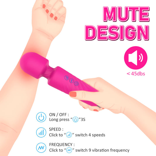 Mute Wand Massager Rechargeable 7 Frequencies 4 Speeds Body Recovery