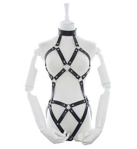 "Get ready to spice up your wardrobe with the sm Leather Body-Suit! This sleek and stylish bodysuit is made of 100% genuine leather, giving you a comfortable and edgy look. Perfect for a night out or a daring fashion statement, this body-suit will definitely turn heads. (Warning: may cause serious leather envy.)"