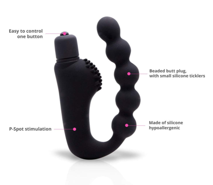 Black Beaded Silicone Butt Plug (Battery Operated)