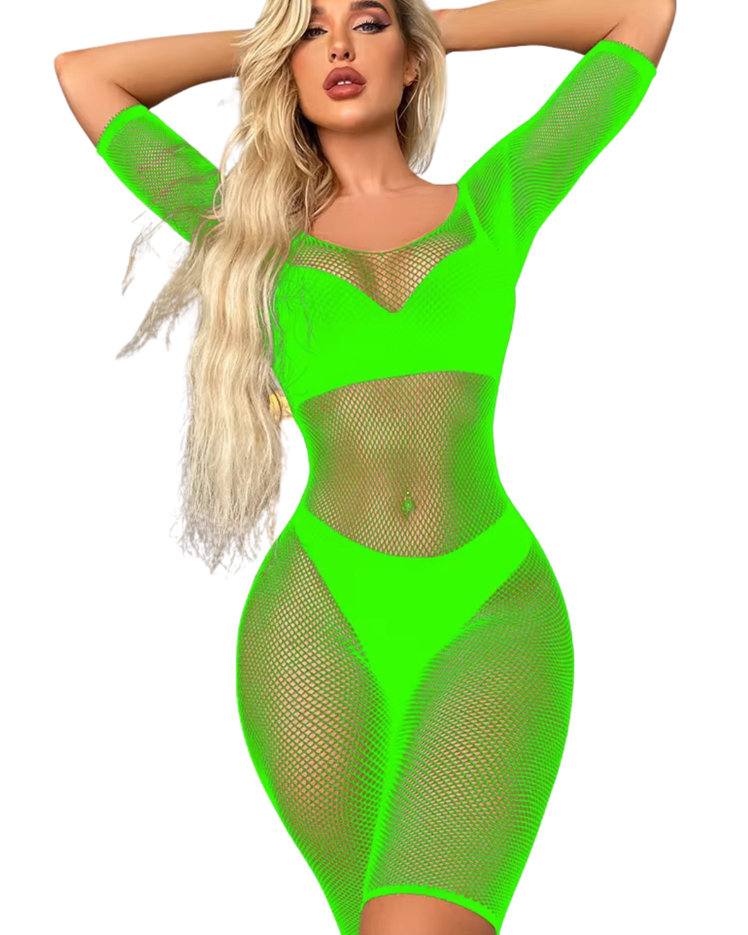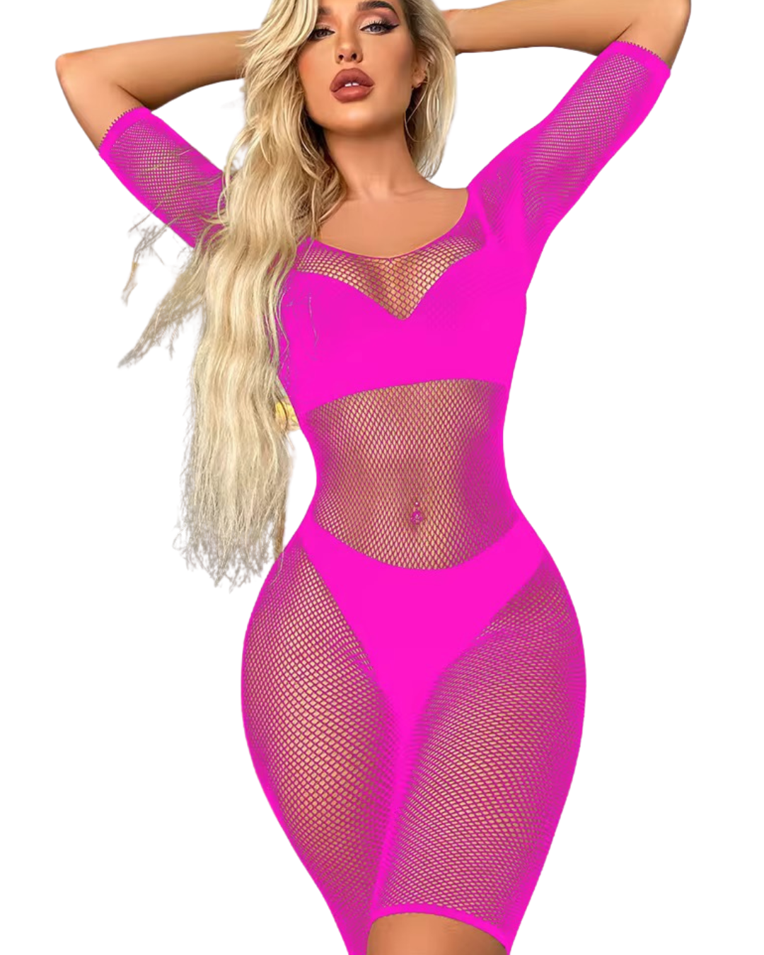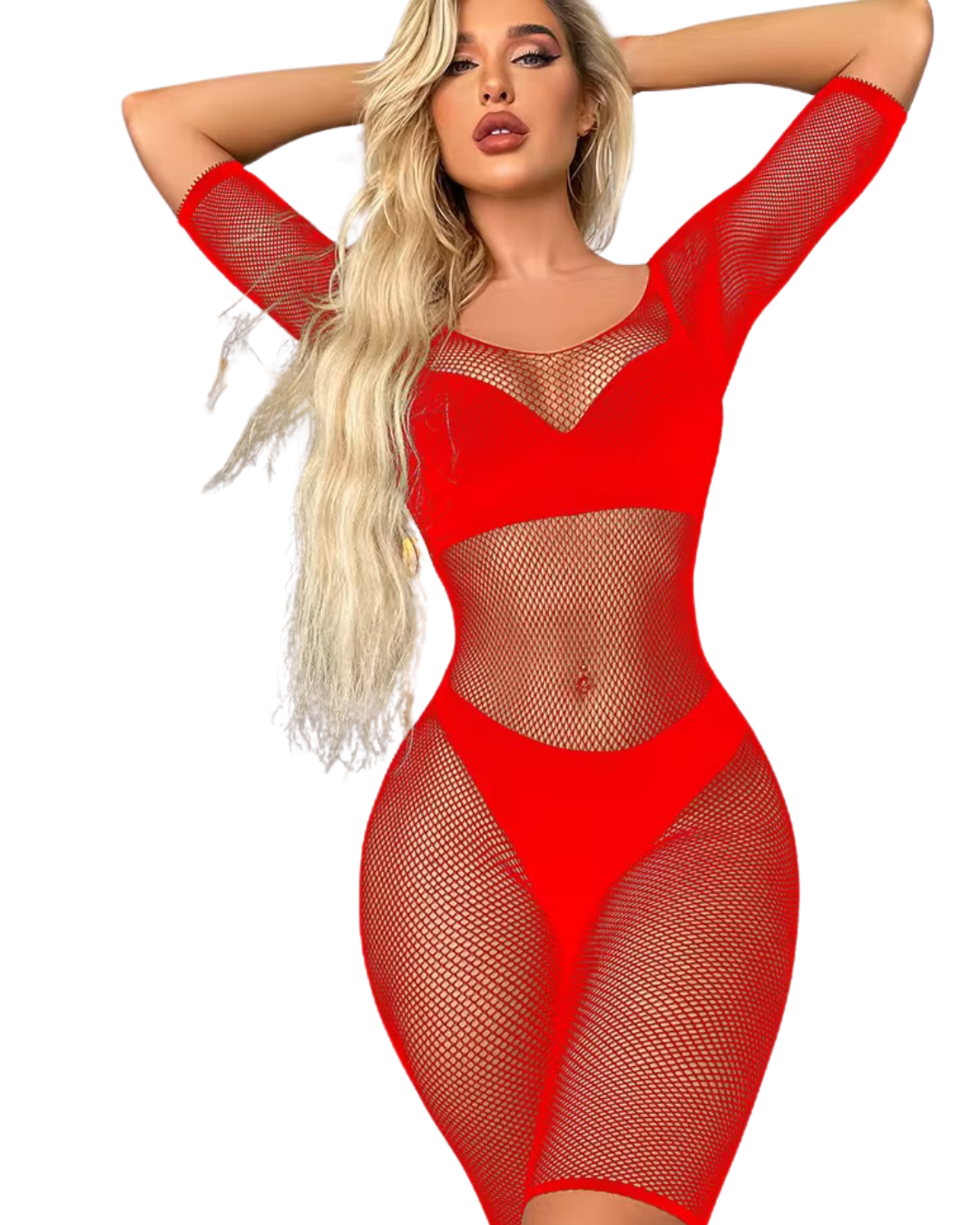 This Fishnet Short Jumpsuit -#004 is a stylish and versatile addition to any wardrobe. Made with high-quality fishnet material, this jumpsuit features a sleeveless design that is perfect for warm weather. Its unique texture adds a touch of edge to any outfit, making it a must-have for fashion-forward individuals.