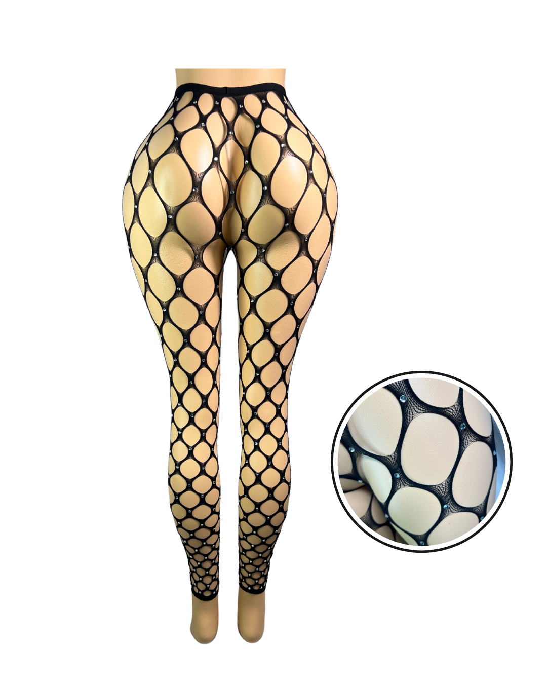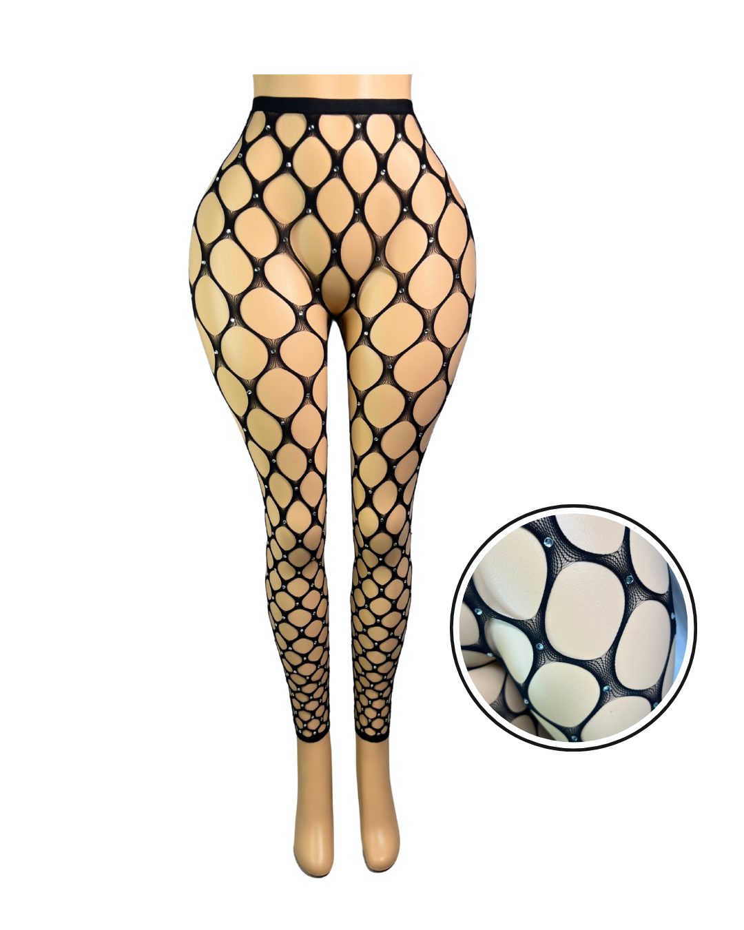 Fishnet Bighole Stockings W/Rhinestones -#004