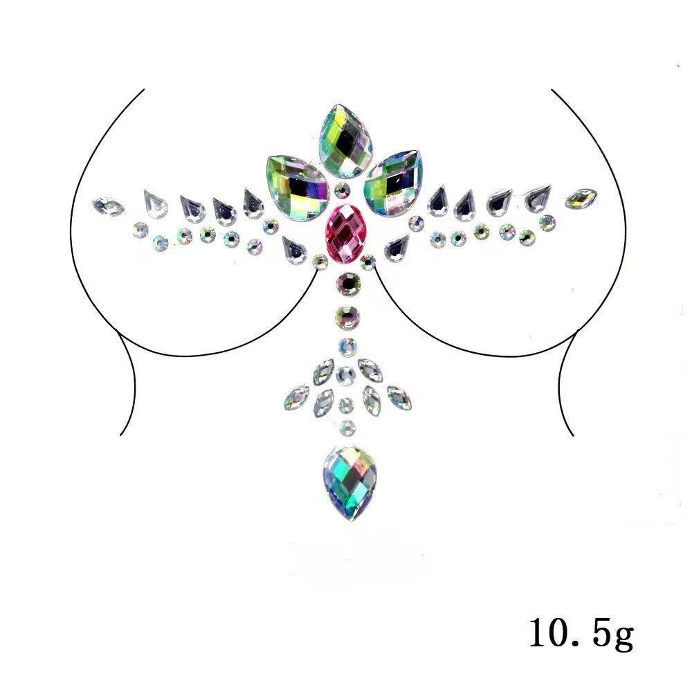 Add some sparkle to your outfit with Rhinestone Chest Gems. These chest gems are the perfect accessory to elevate any look. Made with high-quality rhinestones, they will add a touch of glamour and sophistication. Perfect for adding a bit of shine to any special occasion or everyday outfit.