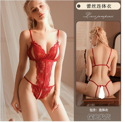 Lace Crotchless & Breast One-Piece Lingerie Set - 015